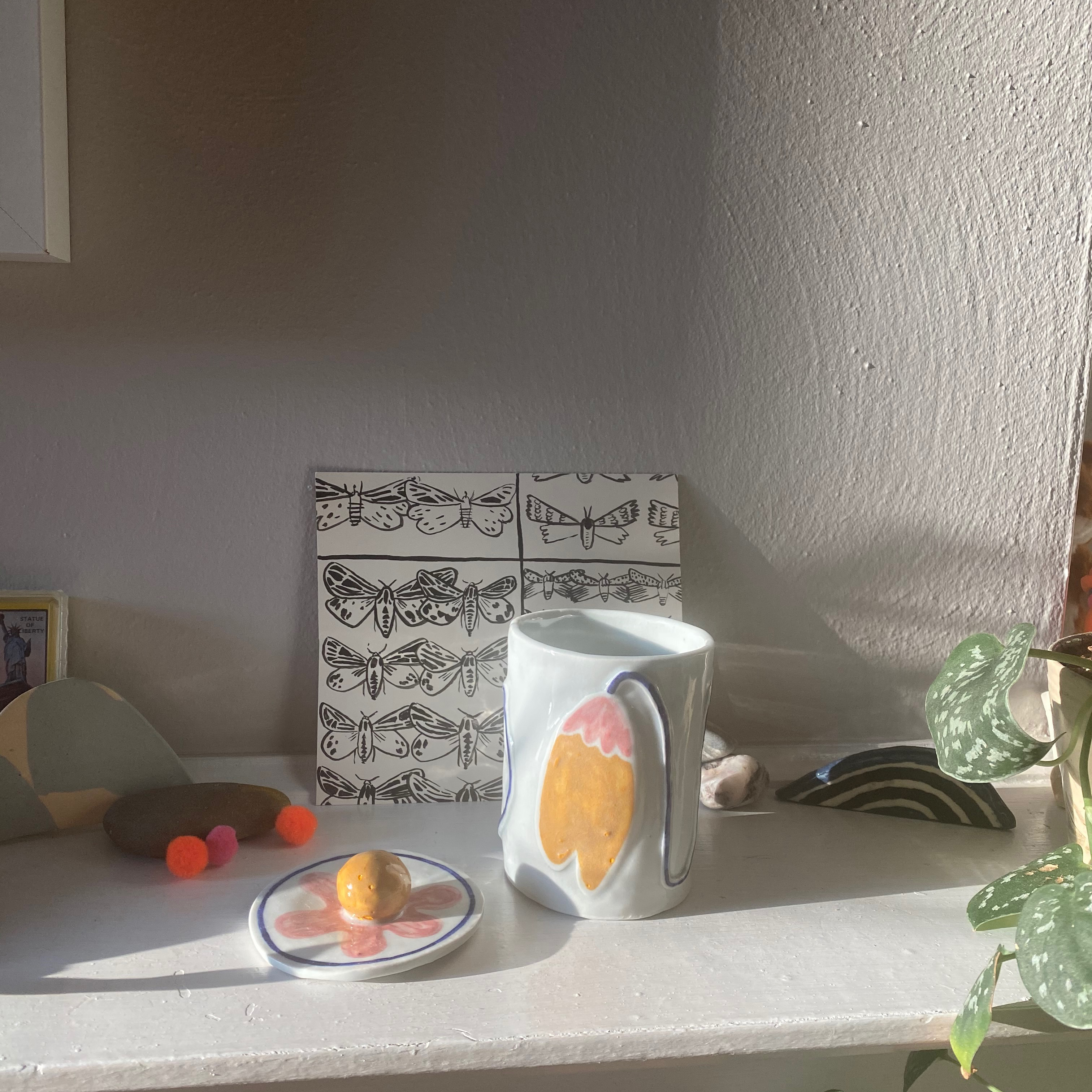 Flower Power, hand-built jar, porcelain with wash and glaze, 2020.