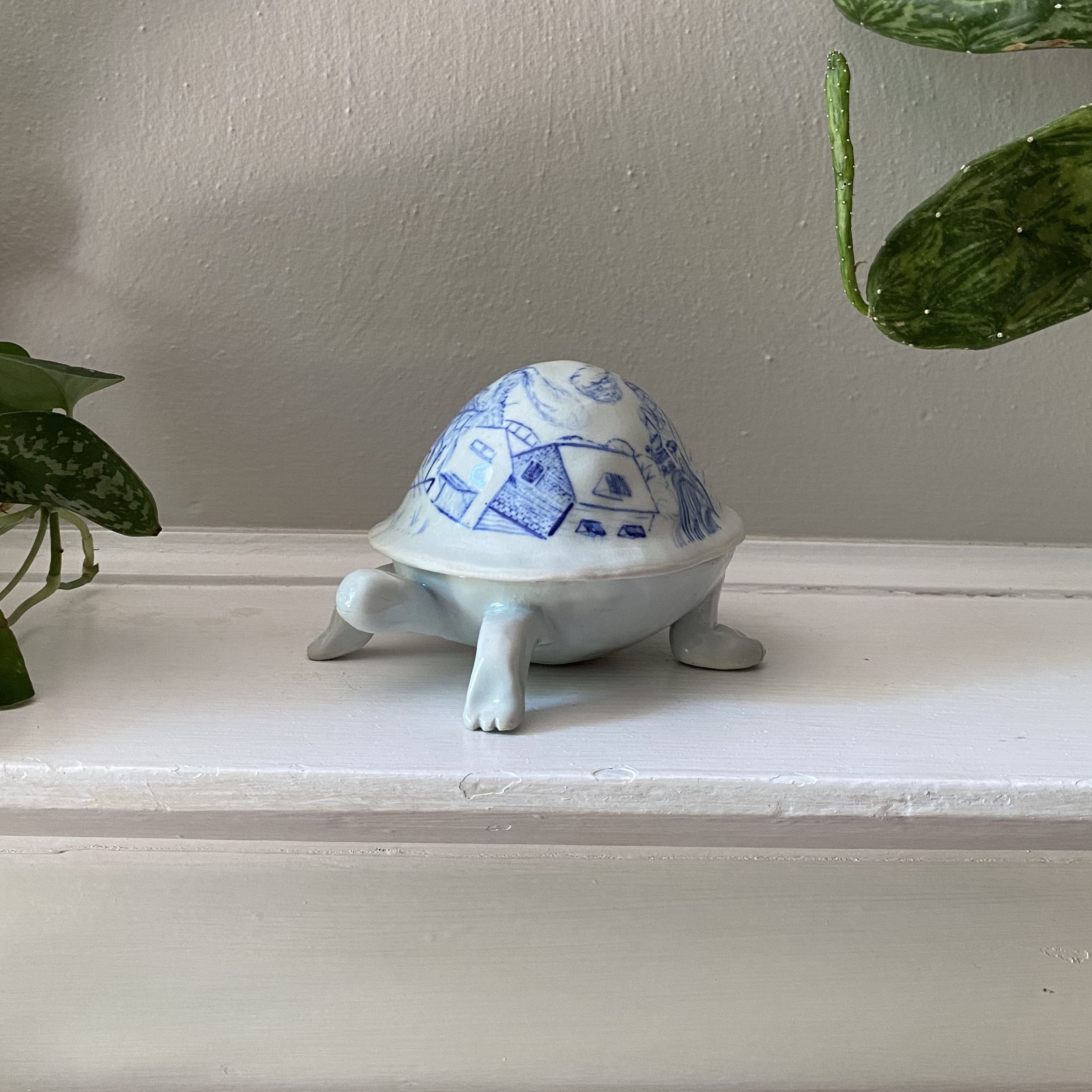 Look Out, Tortoise, hand-built box, porcelain with wash and glaze, 2020.